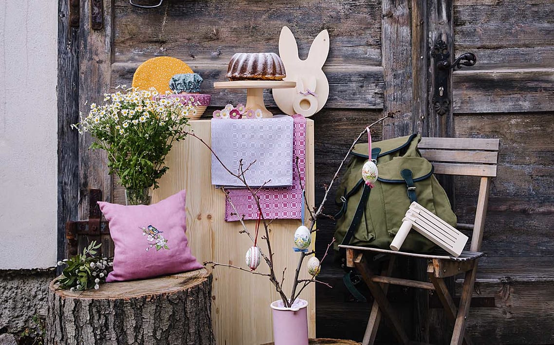 Fröhliche Osterdeko und handgefertigte Schätze für das Osterfest.